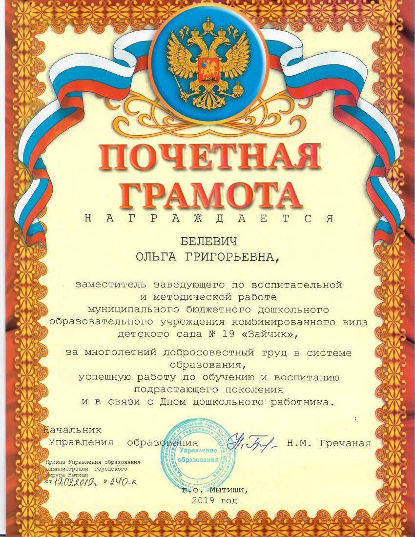 Почетная грамота Белевич О.Г. Published 01.10.2019 at 850 × 1100 in Достижения Image size850x1100File size193 KBMime typeimage/jpeg